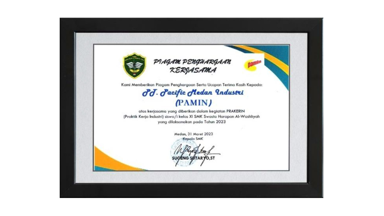 PAMIN achieved the SNI Awards in 2015 from the Government of Republic Indonesia on the 10th of November in 2015 by ministry of trade industry, BSN (Indonesian Standardization Agency), in JCC Jakarta.
