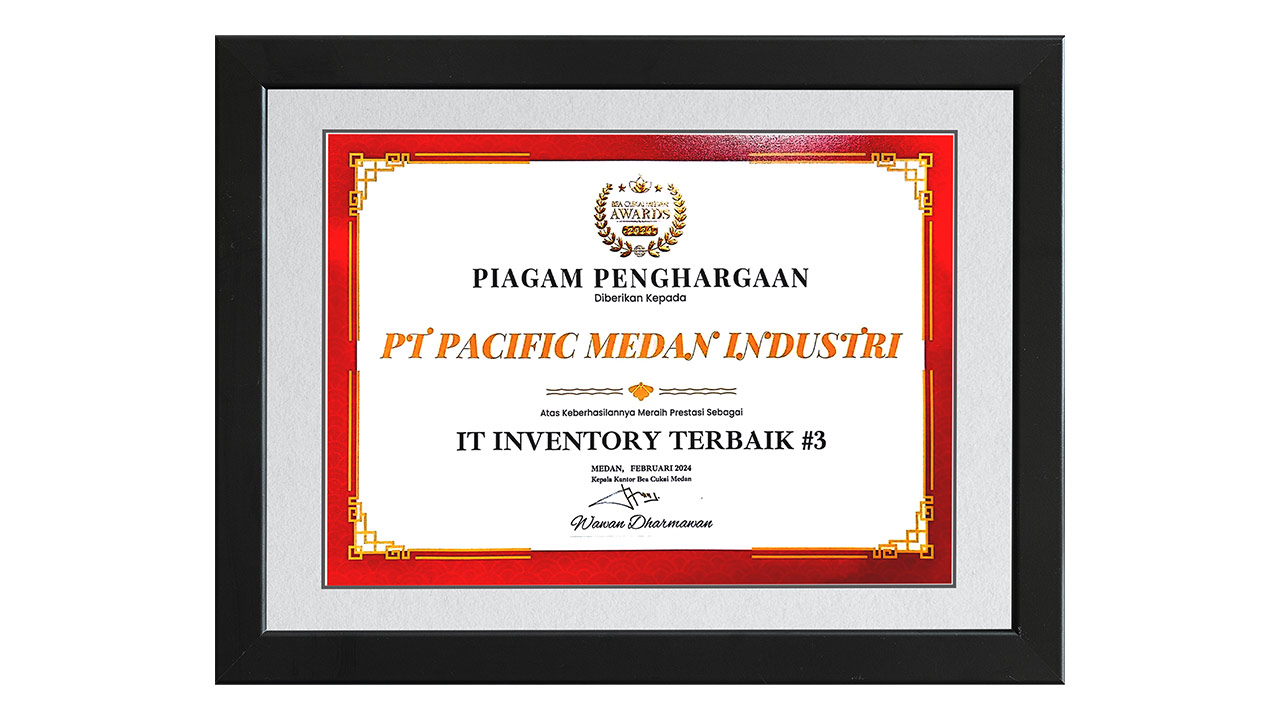 Award to PT Pacific Medan Industri as 3rd place for category Best IT Inventory from Custom Medan, February 2024