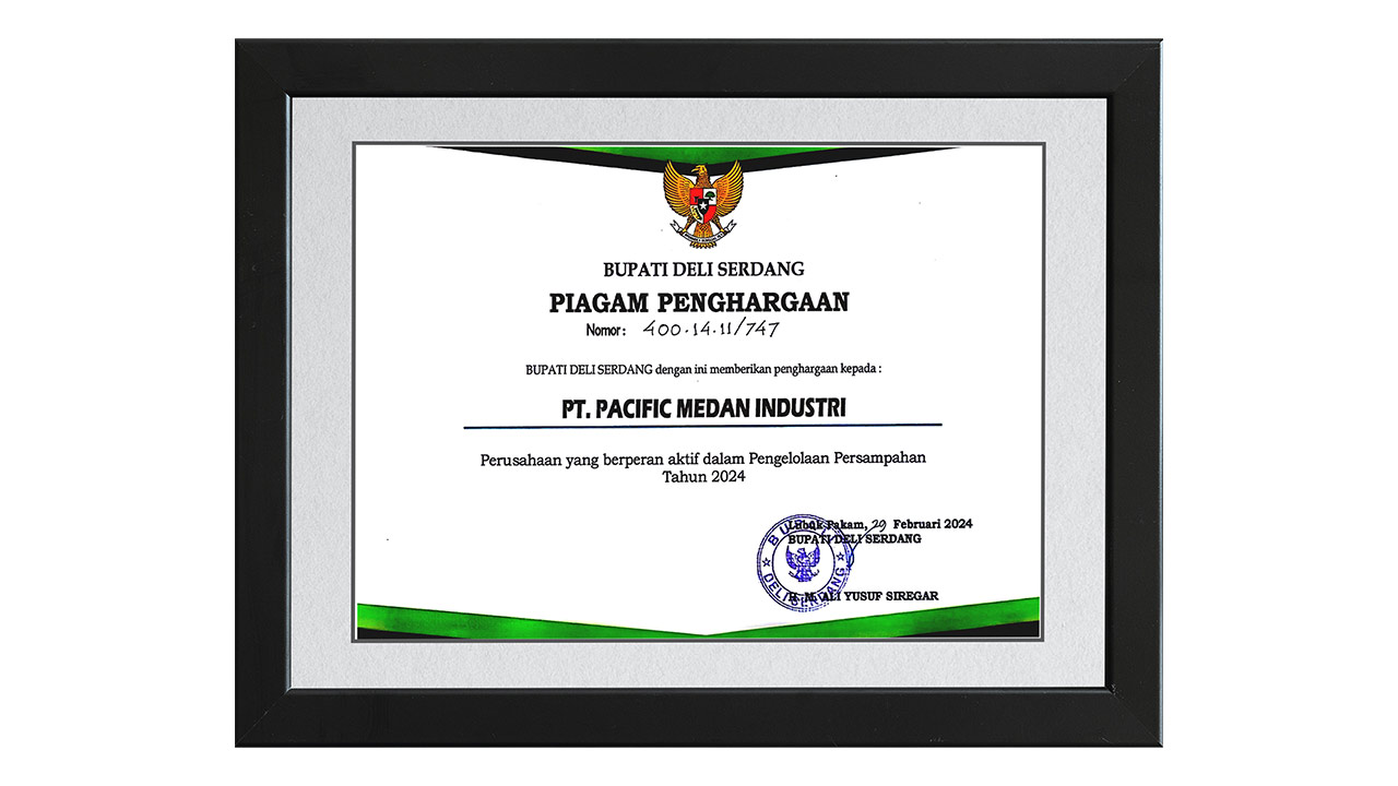 Award to PT Pacific Medan Industri for Environmental Waste Management System on 29th February 2024